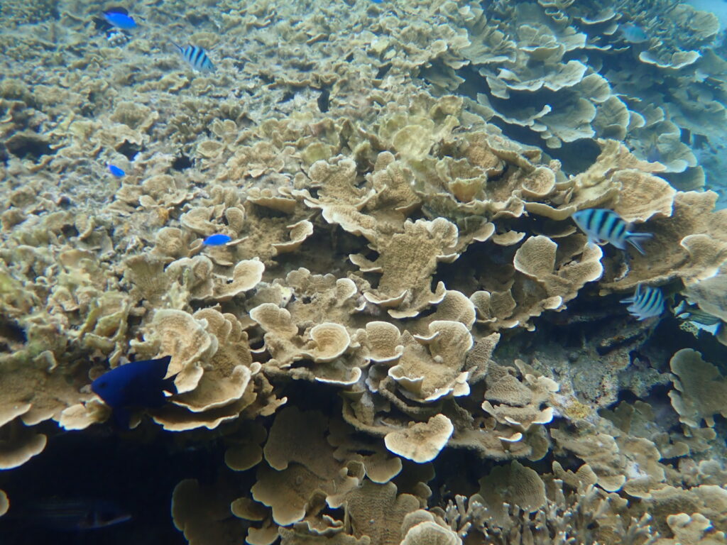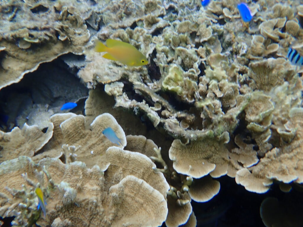 お二人のリクエストは「ウミガメとクマノミ」。 ガイドとして全力で探し回りましたが、今日はウミガメさん、どこかでお昼寝中だったのか姿を見せてくれませんでした。こればかりは野生の生き物、会わせてあげたかった……という悔しい気持ちでいっぱいでした。