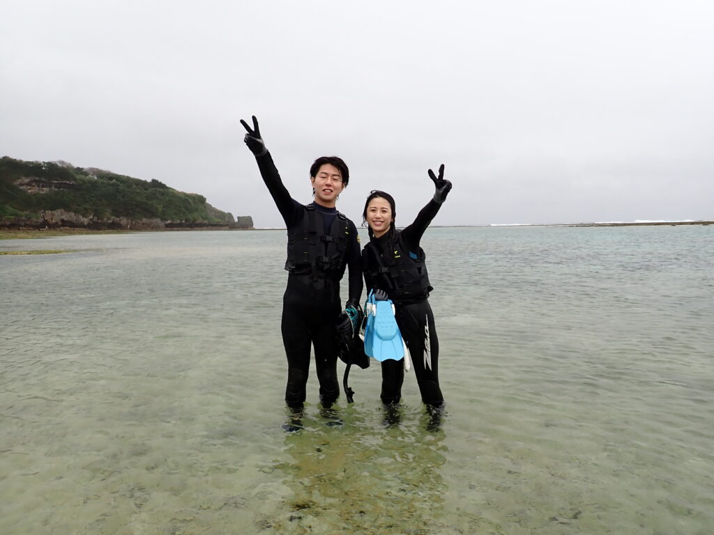 本日遊びに来てくださったのは、28歳の新婚旅行中のご夫婦です。 初めての沖縄旅行、その大切な思い出作りに私たちのシュノーケリングを選んでくださいました。