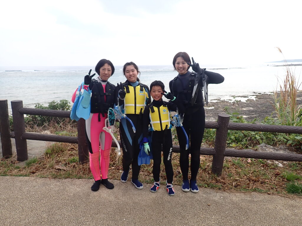 今日の糸満はどんよりとした曇り空でしたが、そんな天気を吹き飛ばすくらい元気いっぱいのご家族をご案内しました。なんと、今回が初めての沖縄旅行とのこと!数あるショップの中から、僕たちのジョン万ビーチ(天然水族感)を選んでくれて本当にありがとうございます。