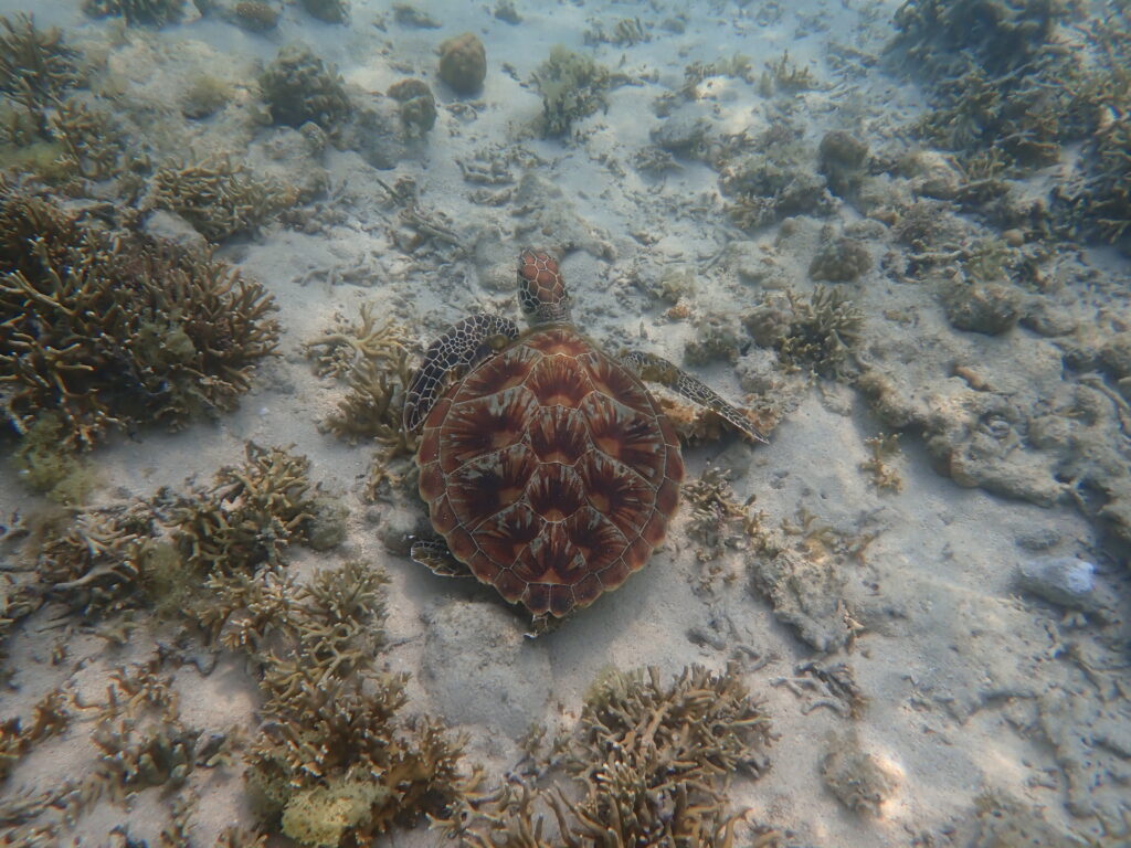 今日の見どころは、水深の浅い場所で出会ったウミガメさん。 手が届きそうな距離で優雅に泳ぐ姿や、浅瀬で揺れるイソギンチャクに隠れるクマノミに、皆さん大興奮でした。さらに今日は、自然が作ったアトラクション「安全な離岸流」を使って、みんなで流れに乗って遊ぶ特別な体験も。